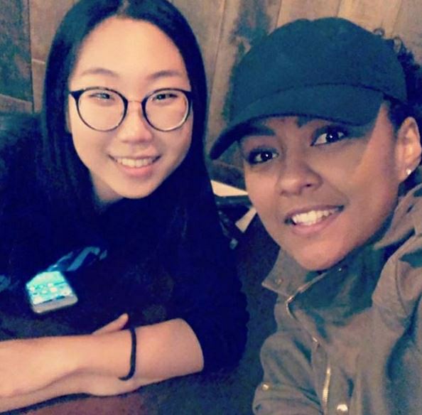 Damiris ao lado de sua tradutora na Coreia do Sul. Foto: Divulgação/CBB.jpg
